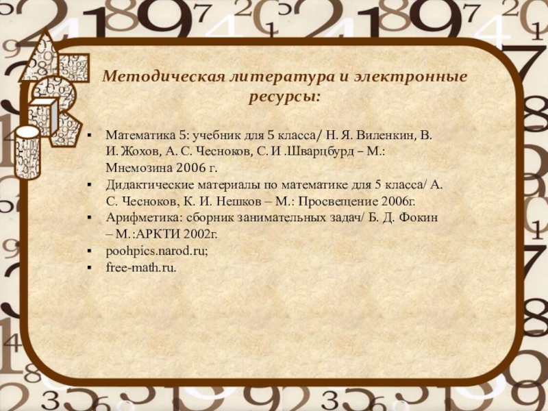 Методическая литература и электронные ресурсы:
