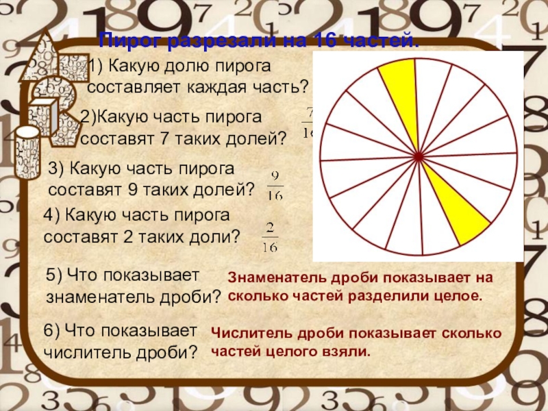 6) Что показывает числитель дроби?