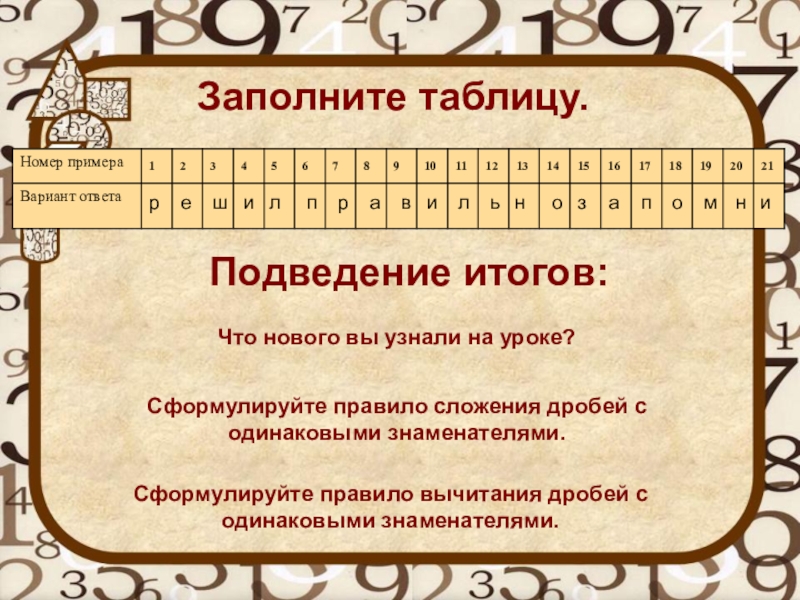 Сформулируйте правило вычитания дробей с одинаковыми знаменателями.