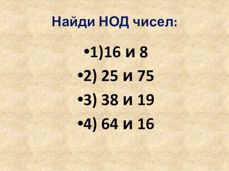 Слайд 2Найди НОД чисел: