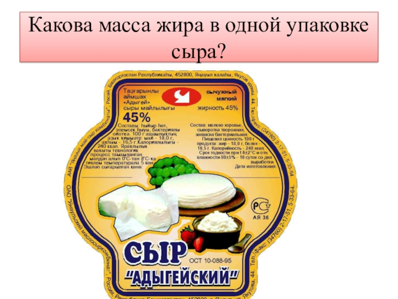 Слайд 6Какова масса жира в одной упаковке сыра?