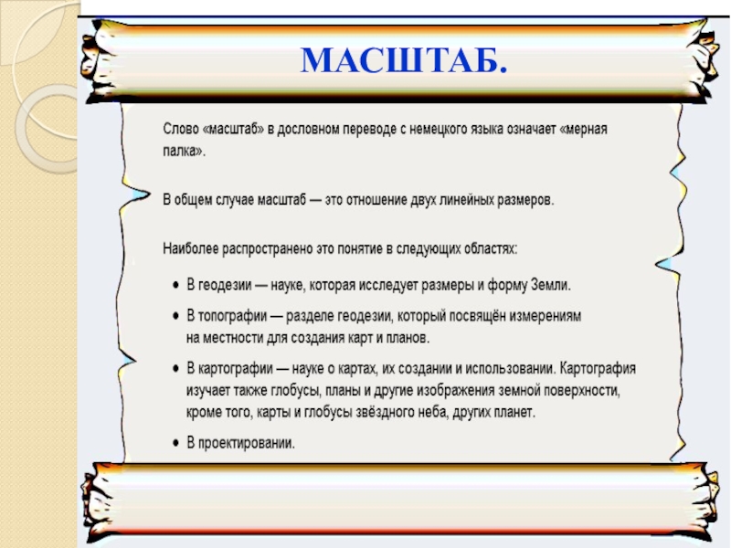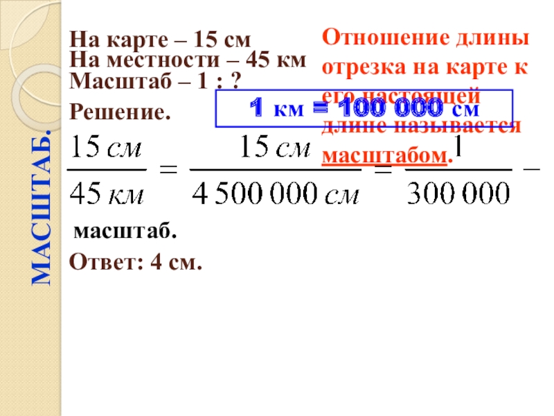 Отношение длины отрезка на карте к его настоящей длине называется масштабом.