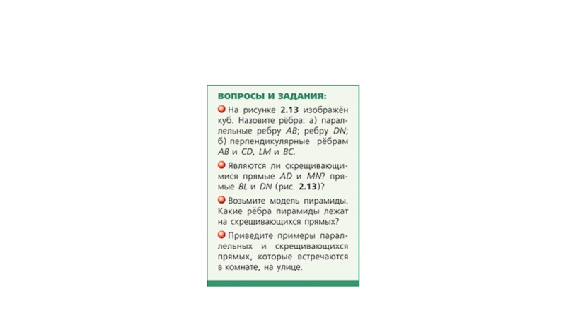 Презентация, доклад к уроку математики 6 класс на тему Прямые в пространстве ( 24 урок)