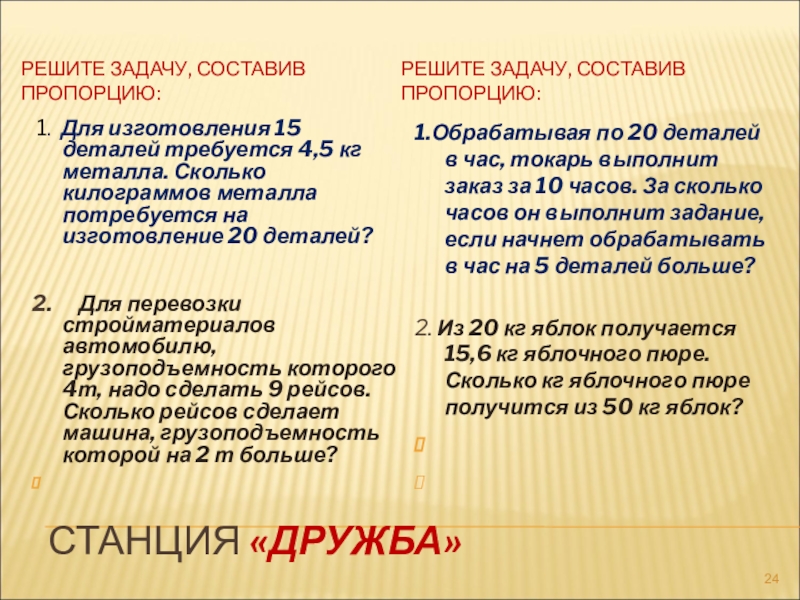 1.Обрабатывая по 20 деталей в час, токарь выполнит заказ за 10 часов. За сколько часов он выполнит задание, если начнет обрабатывать в час на 5 деталей больше?