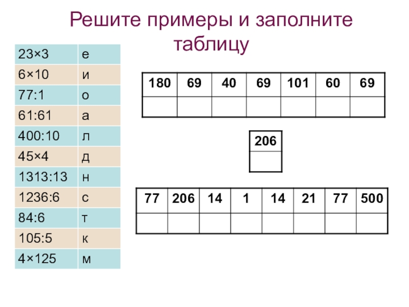 Слайд 4Решите примеры и заполните таблицу