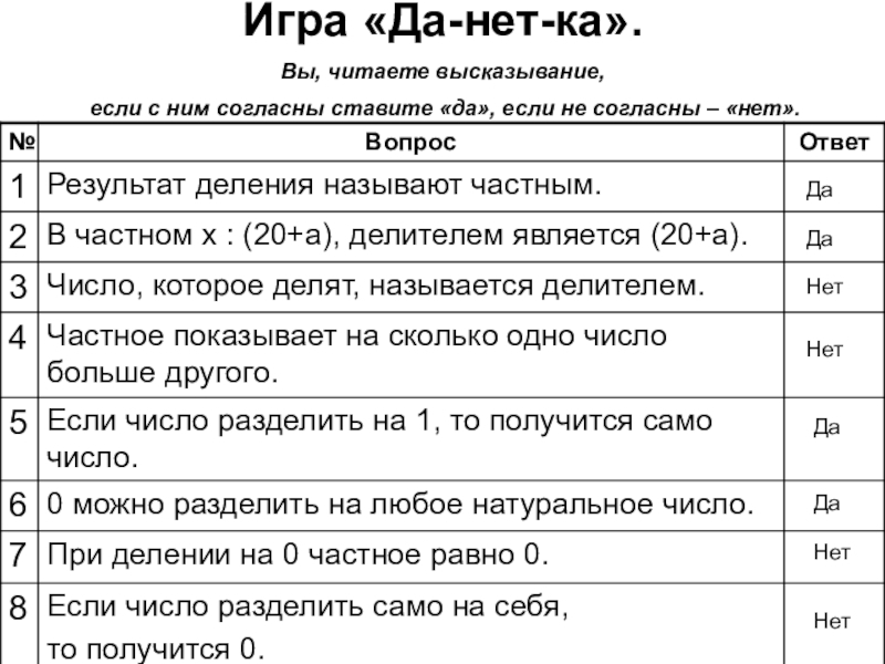 Слайд 2Игра «Да-нет-ка». Вы, читаете высказывание, если с ним согласны ставите «да», если