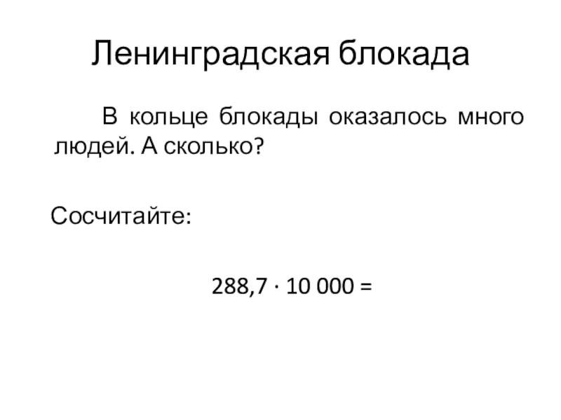 Ленинградская блокада    В кольце блокады оказалось много людей. А сколько?   Сосчитайте:   288,7