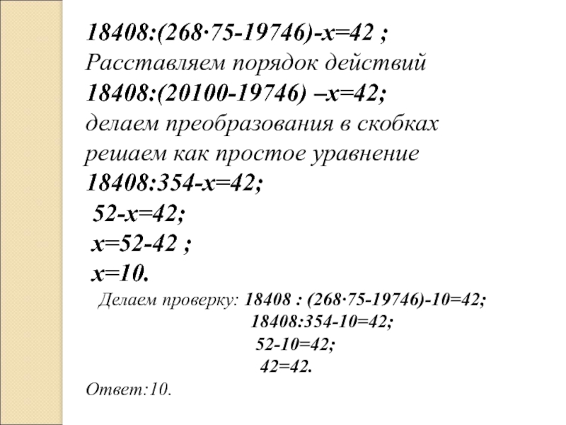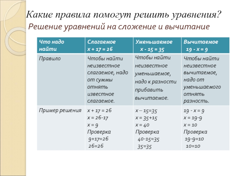 3.Решаем как простое уравнение используя правило нахождение неизвестного компонента.