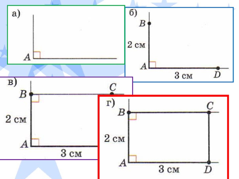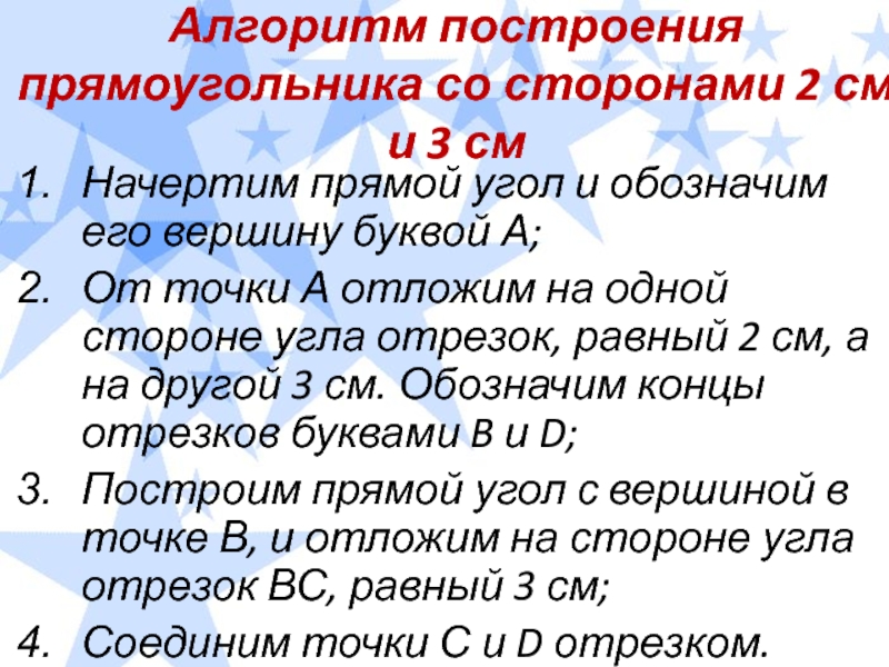 Слайд 8Алгоритм построения прямоугольника со сторонами 2 см и 3 см
