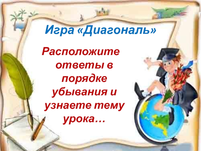 Игра «Диагональ»Расположите ответы в порядке убывания и узнаете тему урока…