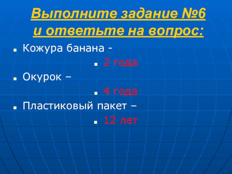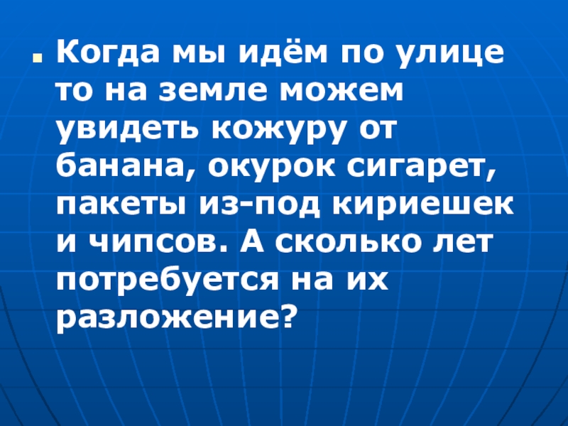от банана, окурок сигарет, пакеты из-под кириешек и чипсов. А сколько лет потребуется на их разложение?