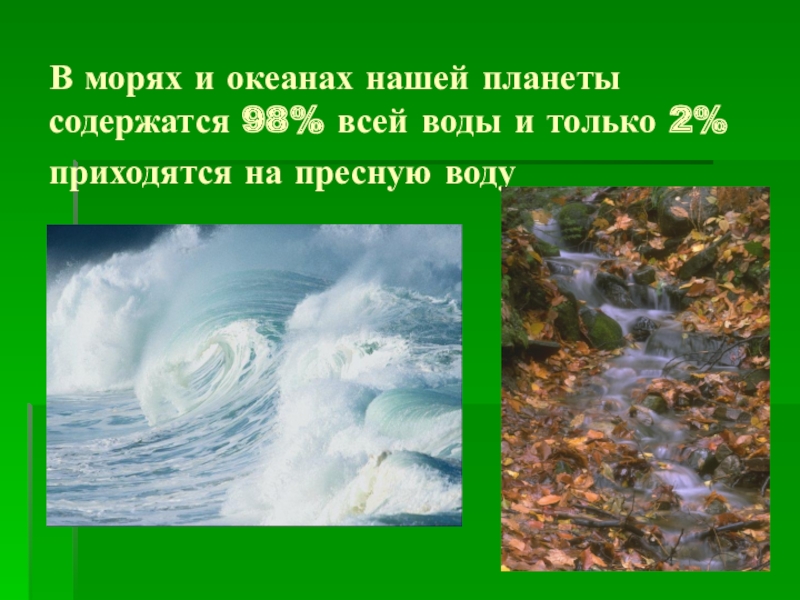 Слайд 18В морях и океанах нашей планеты содержатся 98% всей воды и