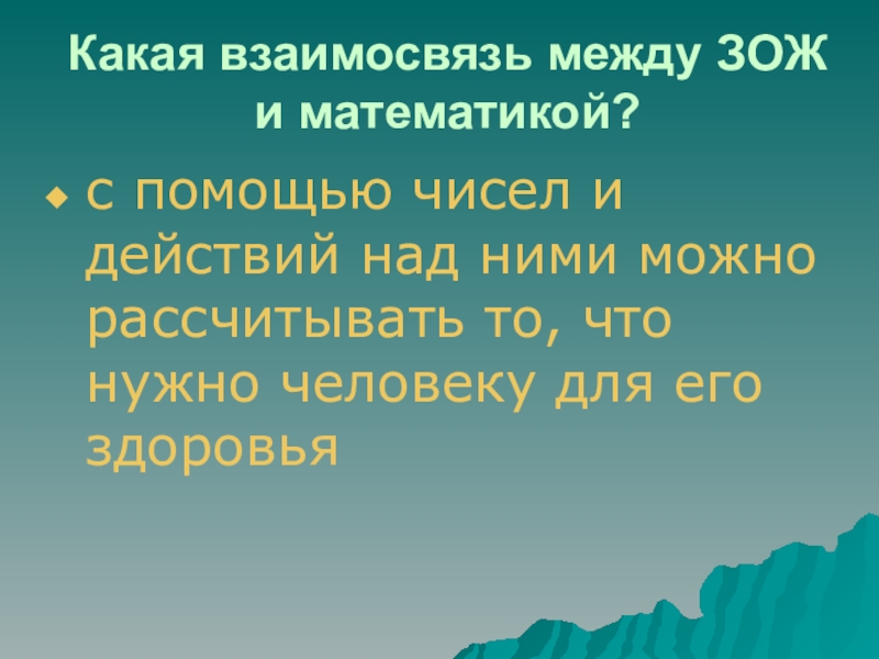Слайд 5Какая взаимосвязь между ЗОЖ и математикой?