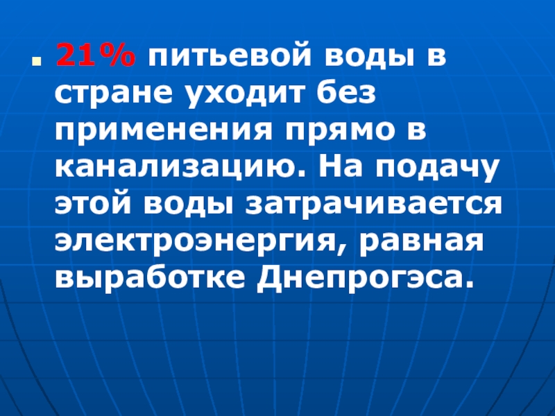 Слайд 2221% питьевой воды в стране уходит без применения прямо в канализацию.