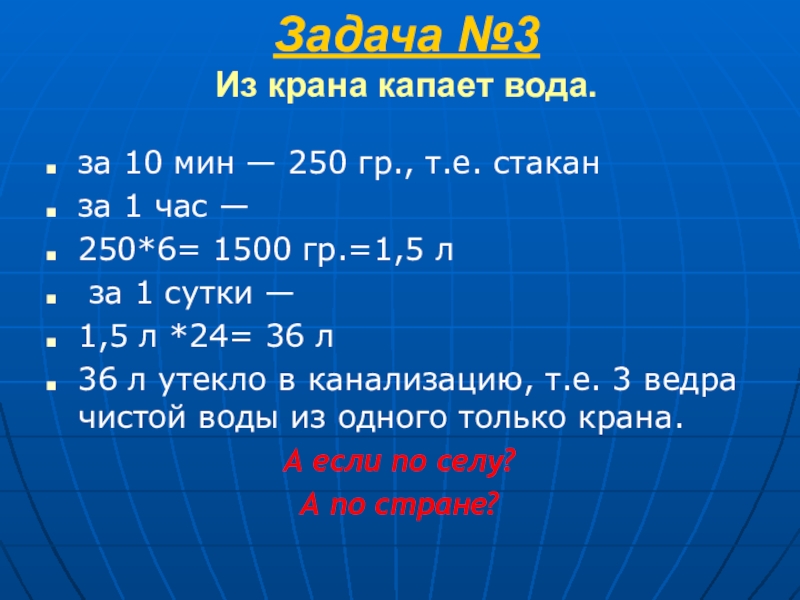 36 л утекло в канализацию, т.е. 3 ведра чистой воды из одного только крана.