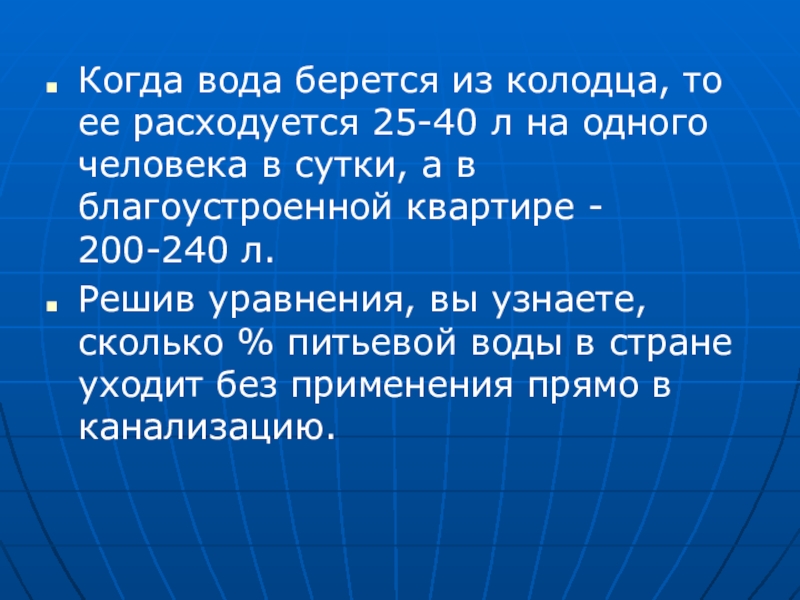 Слайд 20Когда вода берется из колодца, то ее расходуется 25-40 л на