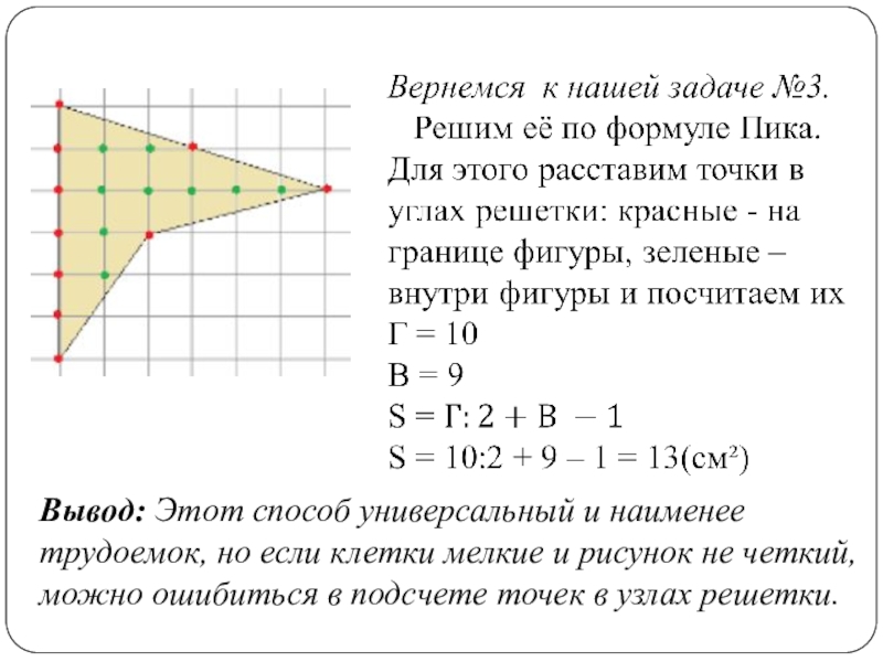Задача 2. Найти площадь многоугольника, если площадь одной клетки равна 1 см²