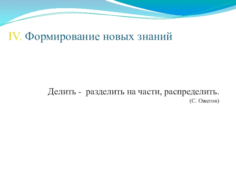 IV. Формирование новых знаний Делить - разделить на части, распределить.(С. Ожегов)