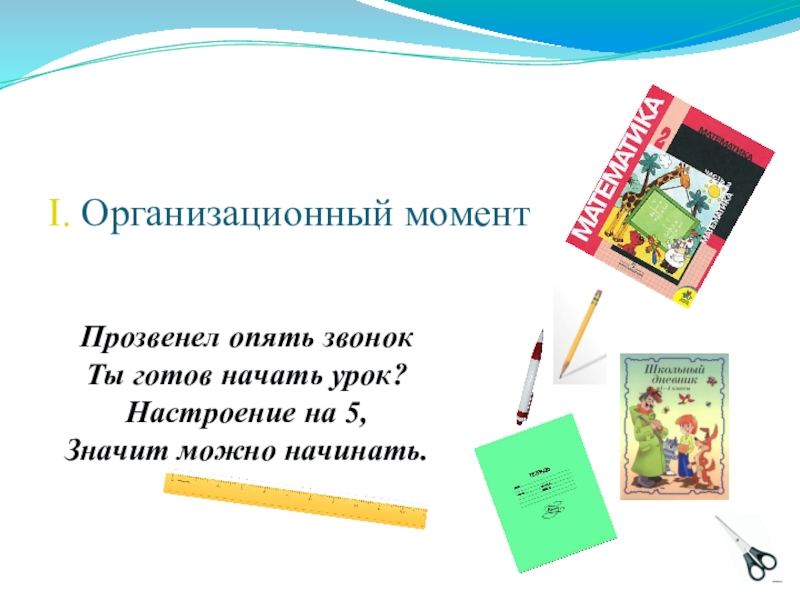 I. Организационный момент Прозвенел опять звонокТы готов начать урок?Настроение на 5,Значит можно начинать.