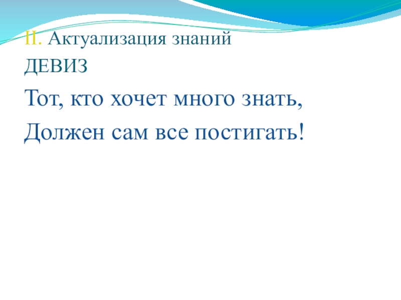 II. Актуализация знанийДЕВИЗ Тот, кто хочет много знать,Должен сам все постигать!