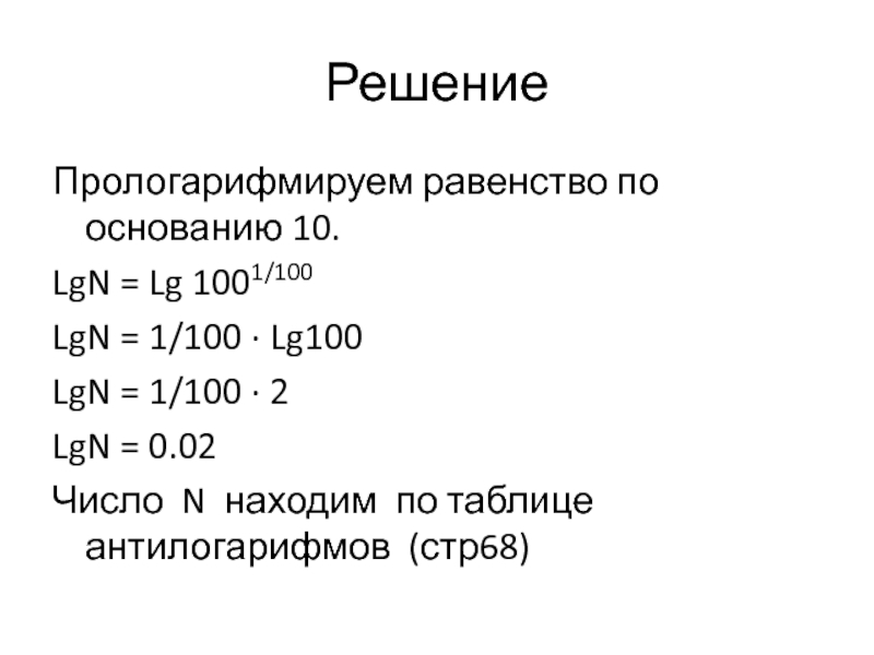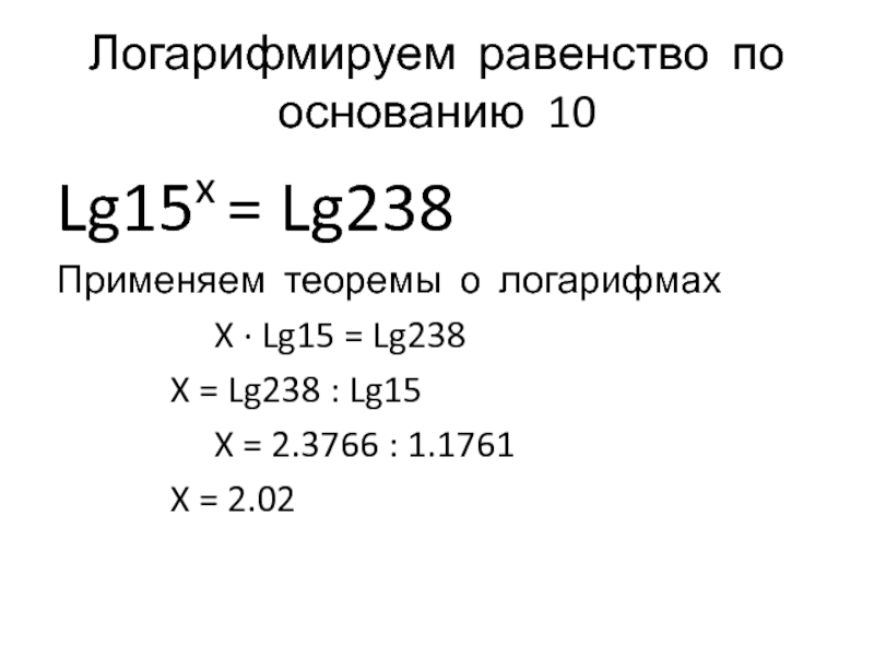 Слайд 41Логарифмируем равенство по основанию 10
