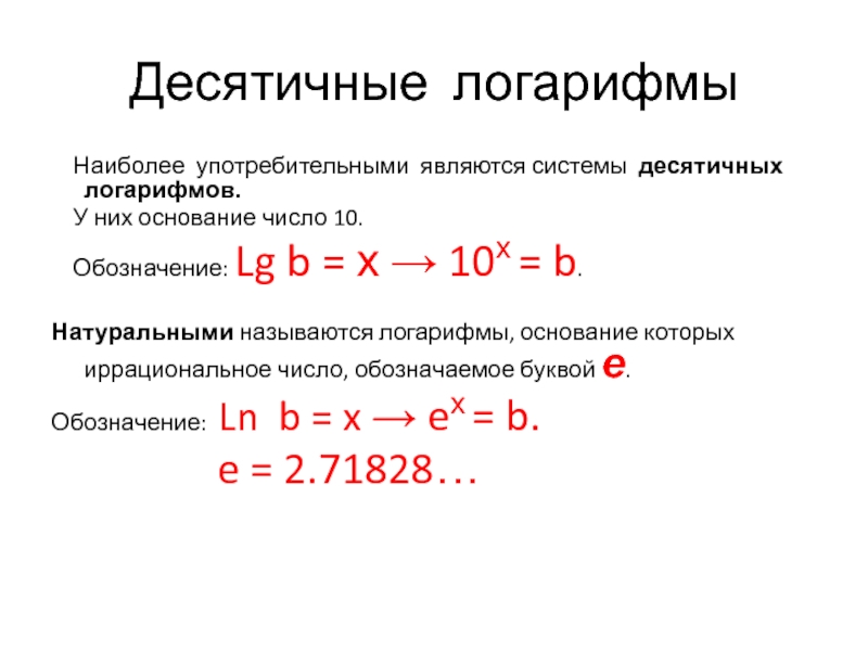 Обозначение: Lg b = х → 10х = b.