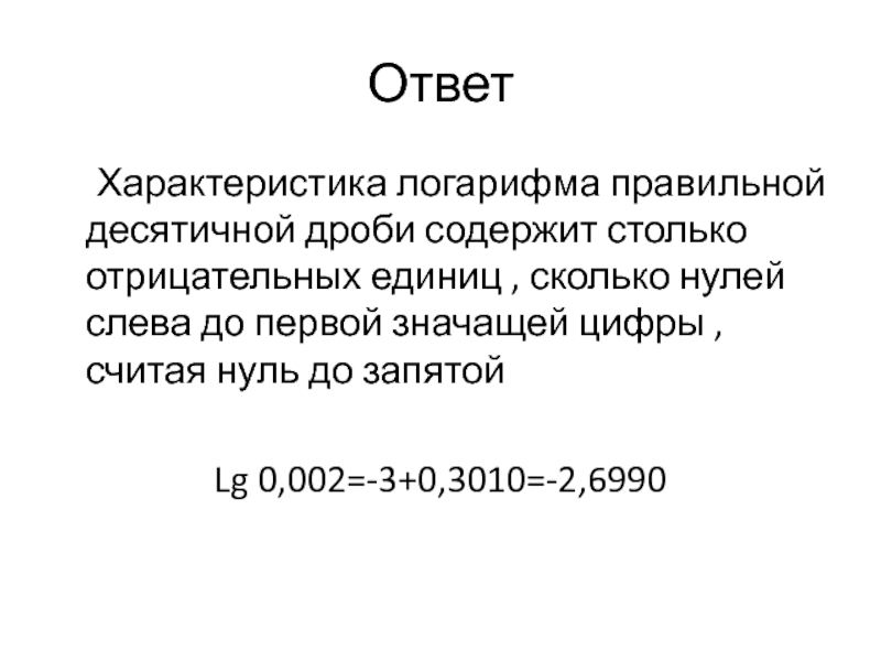Слайд 24Логарифм числа не равного целой степени числа 10