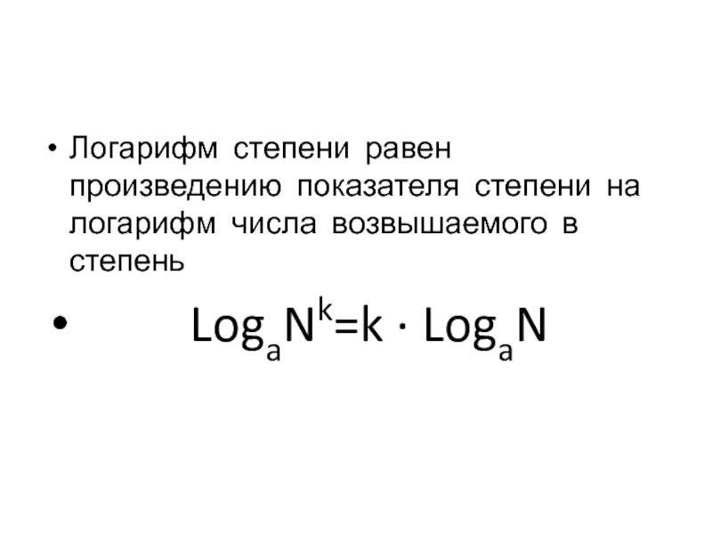 Логарифм степени равен произведению показателя степени на логарифм числа возвышаемого в