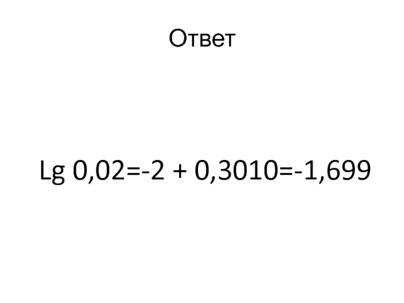 Lg 0,02=-2 + 0,3010=-1,699