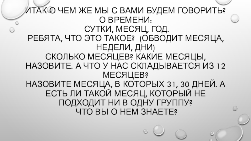 Слайд 5 Итак о чем же мы с вами будем говорить? О времени: Сутки,