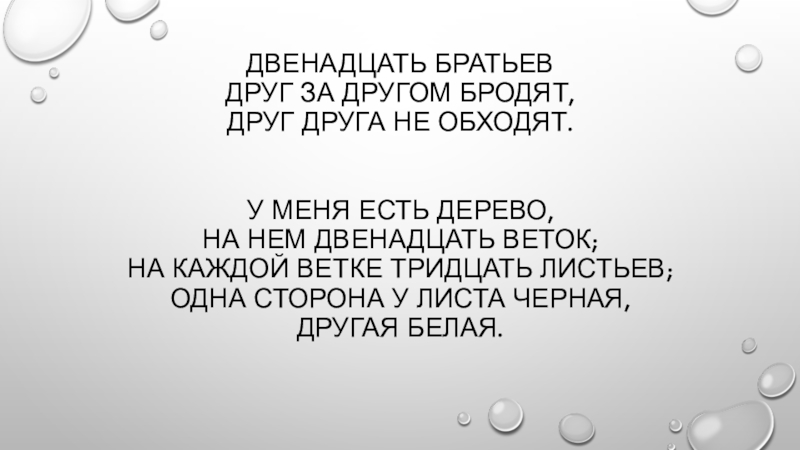 Слайд 4 Двенадцать братьев Друг за другом бродят, Друг друга не обходят. У меня есть