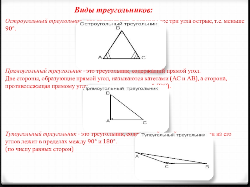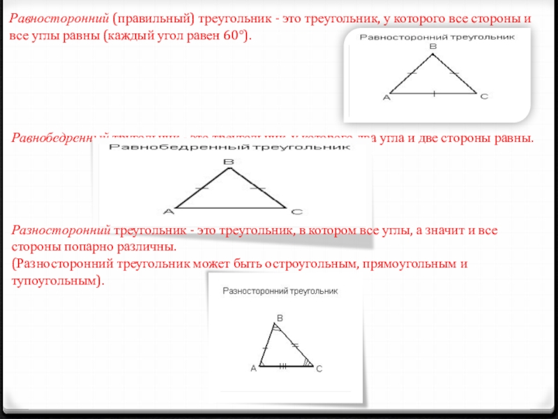 (Разносторонний треугольник может быть остроугольным, прямоугольным и тупоугольным).