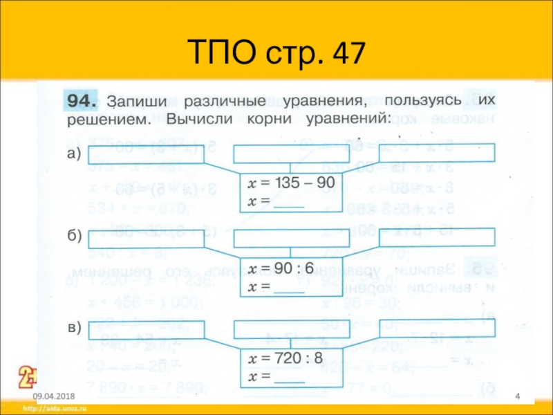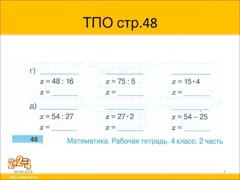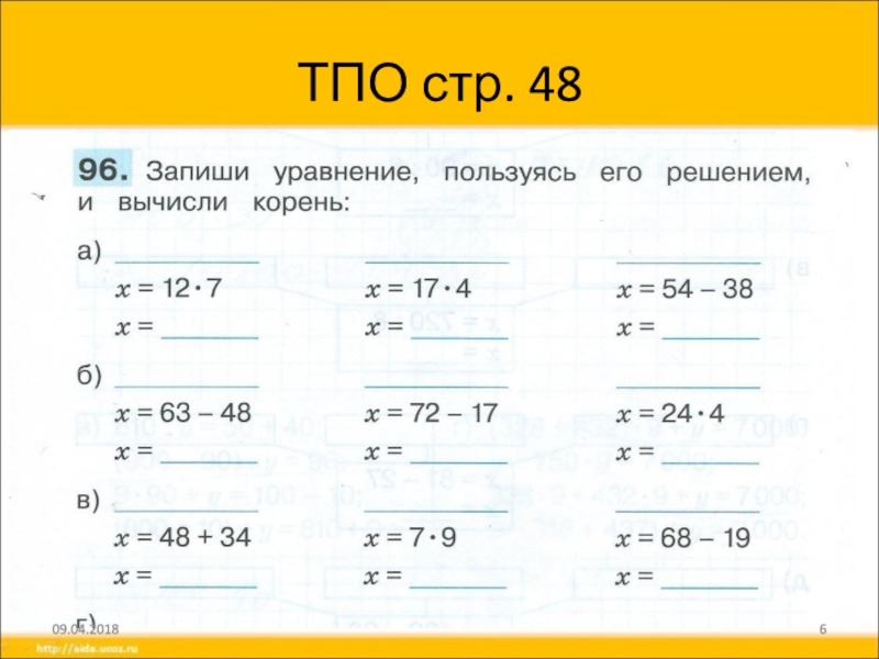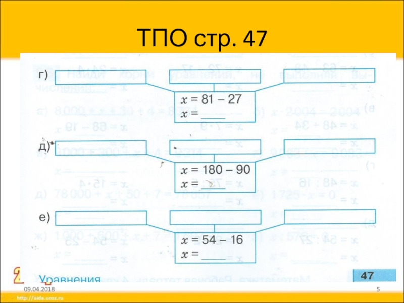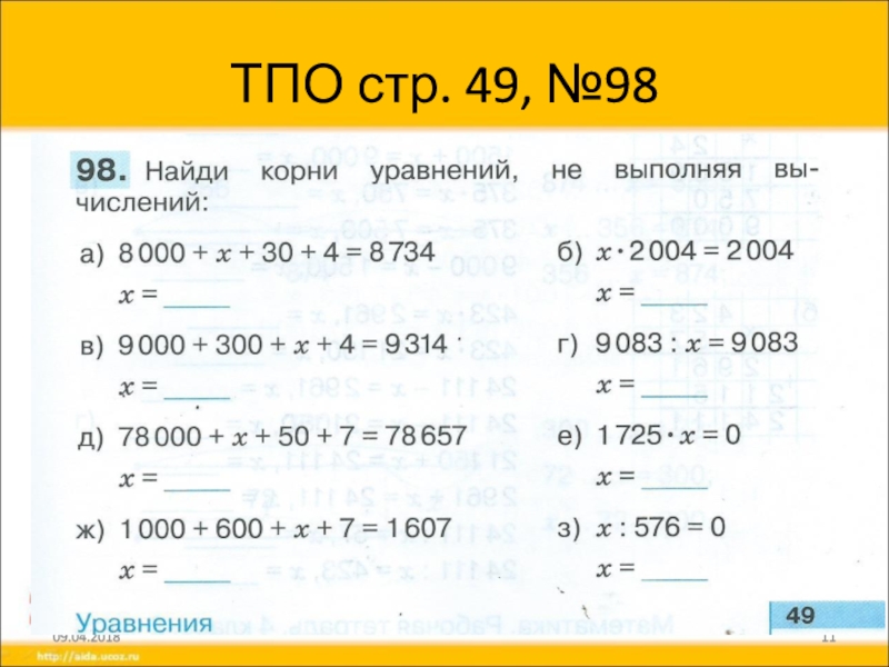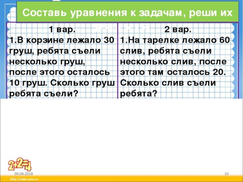 Презентация, доклад к уроку математики на тему Уравнения. Закрепление