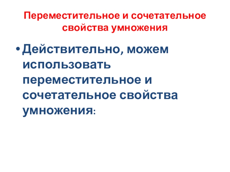 Переместительное и сочетательное свойства умноженияДействительно, можем использовать переместительное и сочетательное свойства умножения: