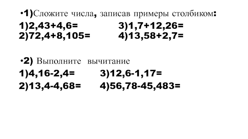 Слайд 13Сложение и вычитание десятичных дробей.
