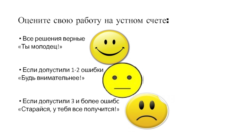 Слайд 10Оцените свою работу на устном счете: