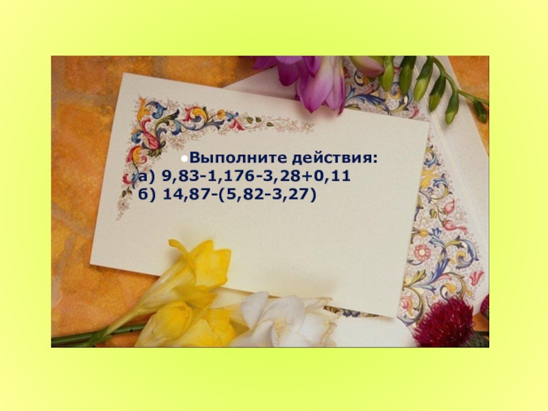 ●Выполните действия:а) 9,83-1,176-3,28+0,11б) 14,87-(5,82-3,27)
