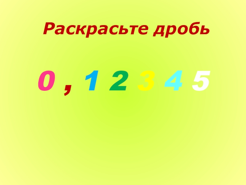 0 , 1 2 3 4 5 Раскрасьте дробь