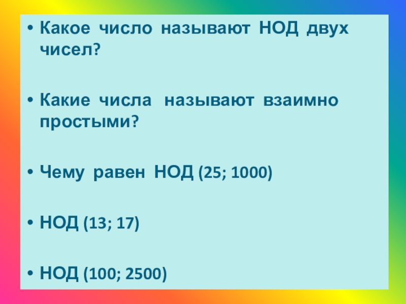 Если общий делитель двух натуральных чисел равен 1, то их называют взаимно простыми