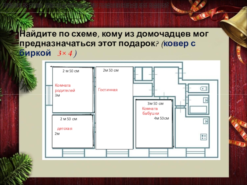 Найдите по схеме, кому из домочадцев мог предназначаться этот подарок? (ковер с биркой 3× 4 )