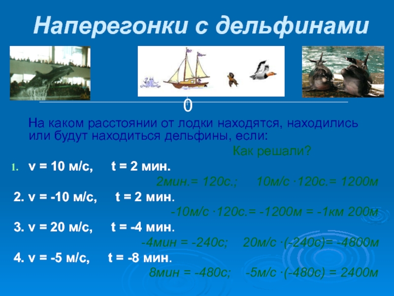 На каком расстоянии от лодки находятся, находились или будут находиться дельфины, если: