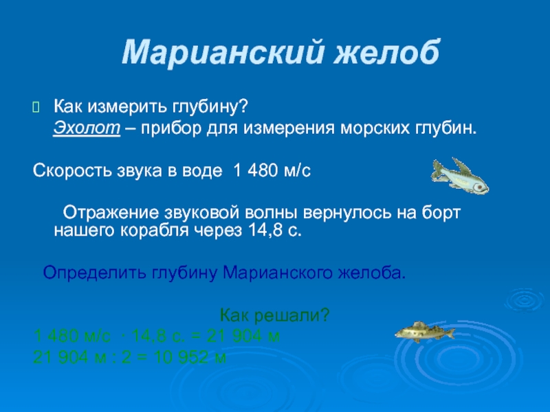 Отражение звуковой волны вернулось на борт нашего корабля через 14,8 с.