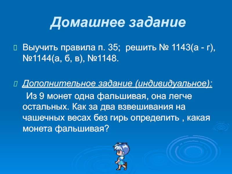 Выучить правила п. 35; решить № 1143(а - г), №1144(а,