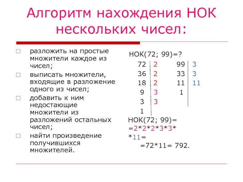 НОК(72; 99)=