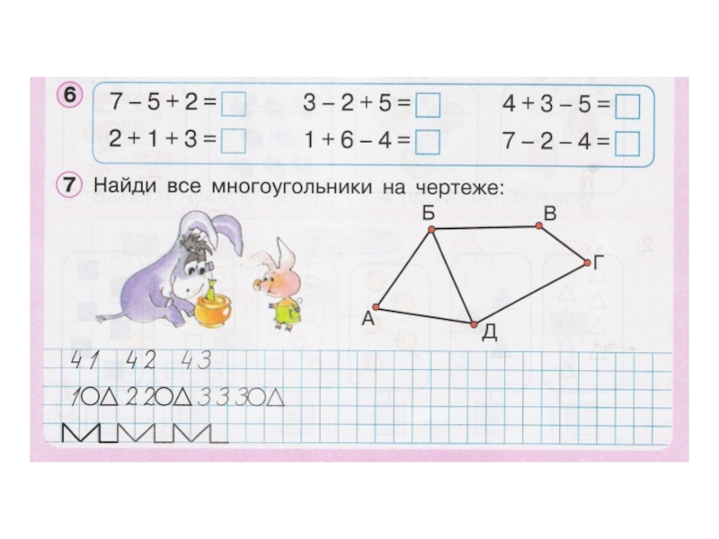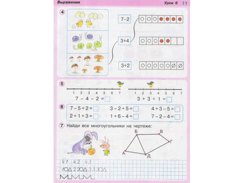 2) Тренировать навыки вычислений в пределах 7, мыслительные операции, речь, творческие способности учащихся.