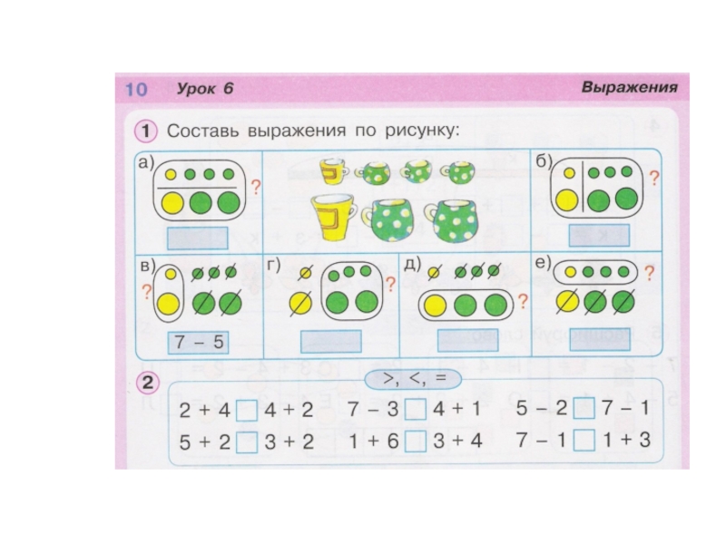 1) Сформировать представление о способах записи процессов в виде сумм и разностей и о способах сравнения двух сумм и разностей.