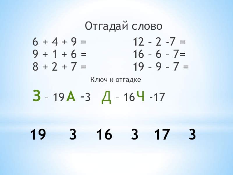 З – 19 А -3 Д – 16 Ч -17