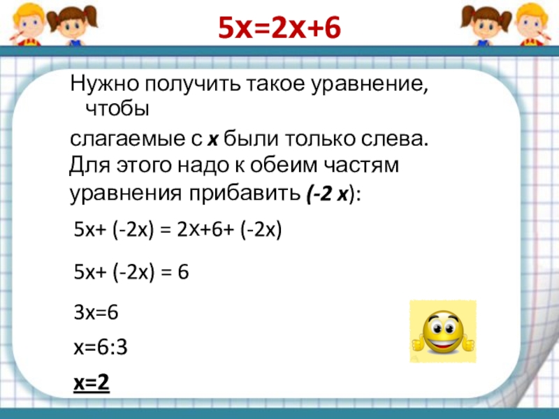 слагаемые с x были только слева.