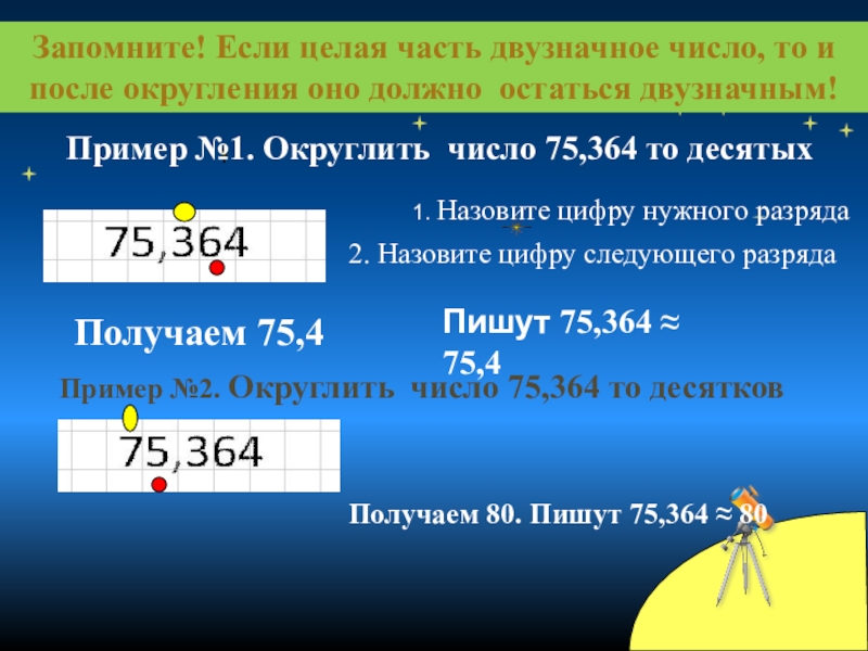 Пример №2. Округлить число 75,364 то десятков