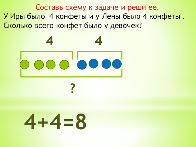?4+4=844       Составь схему к задаче и реши ее.У Иры было 4